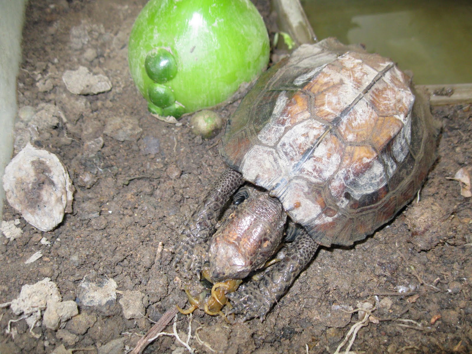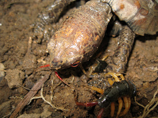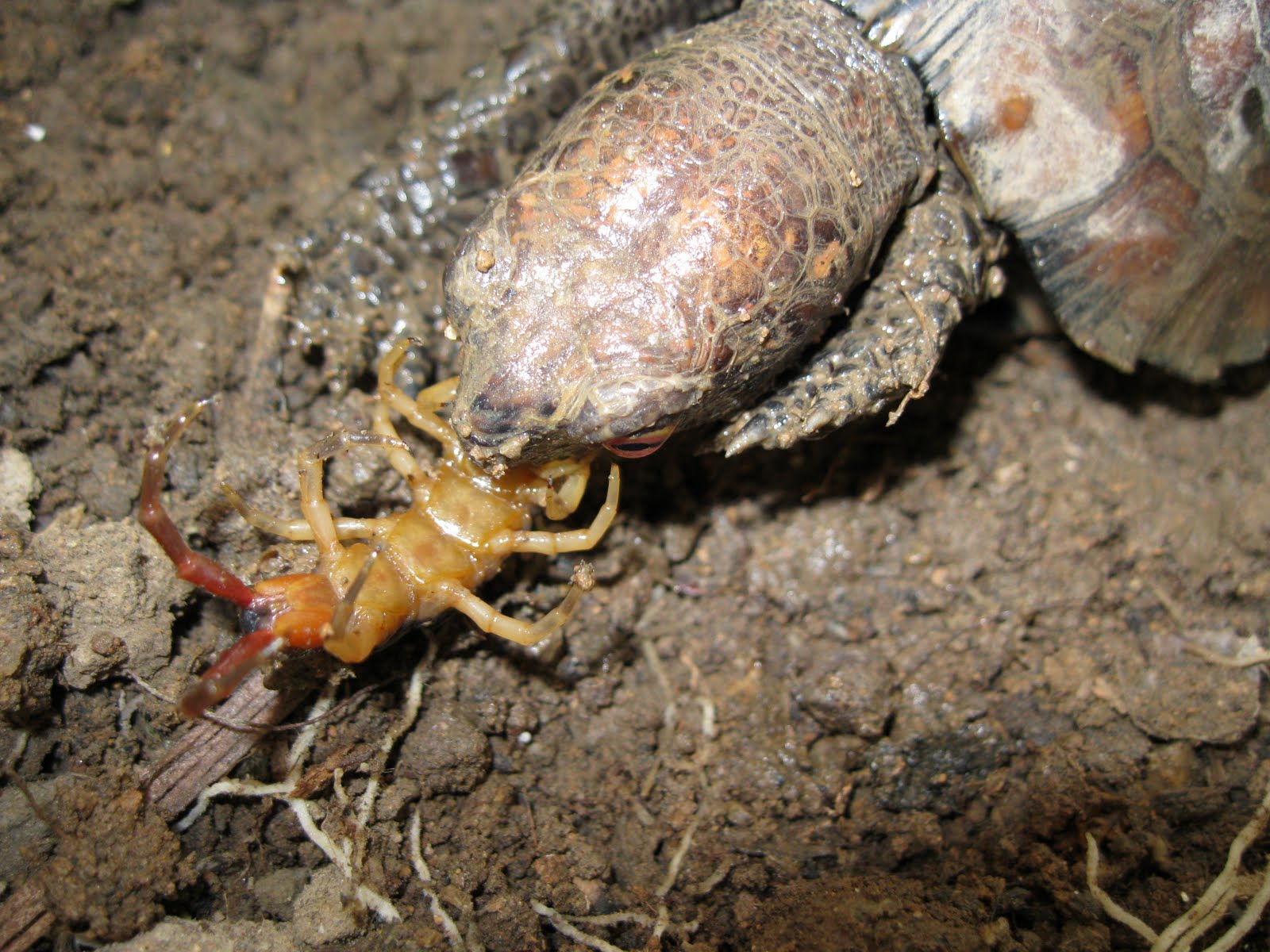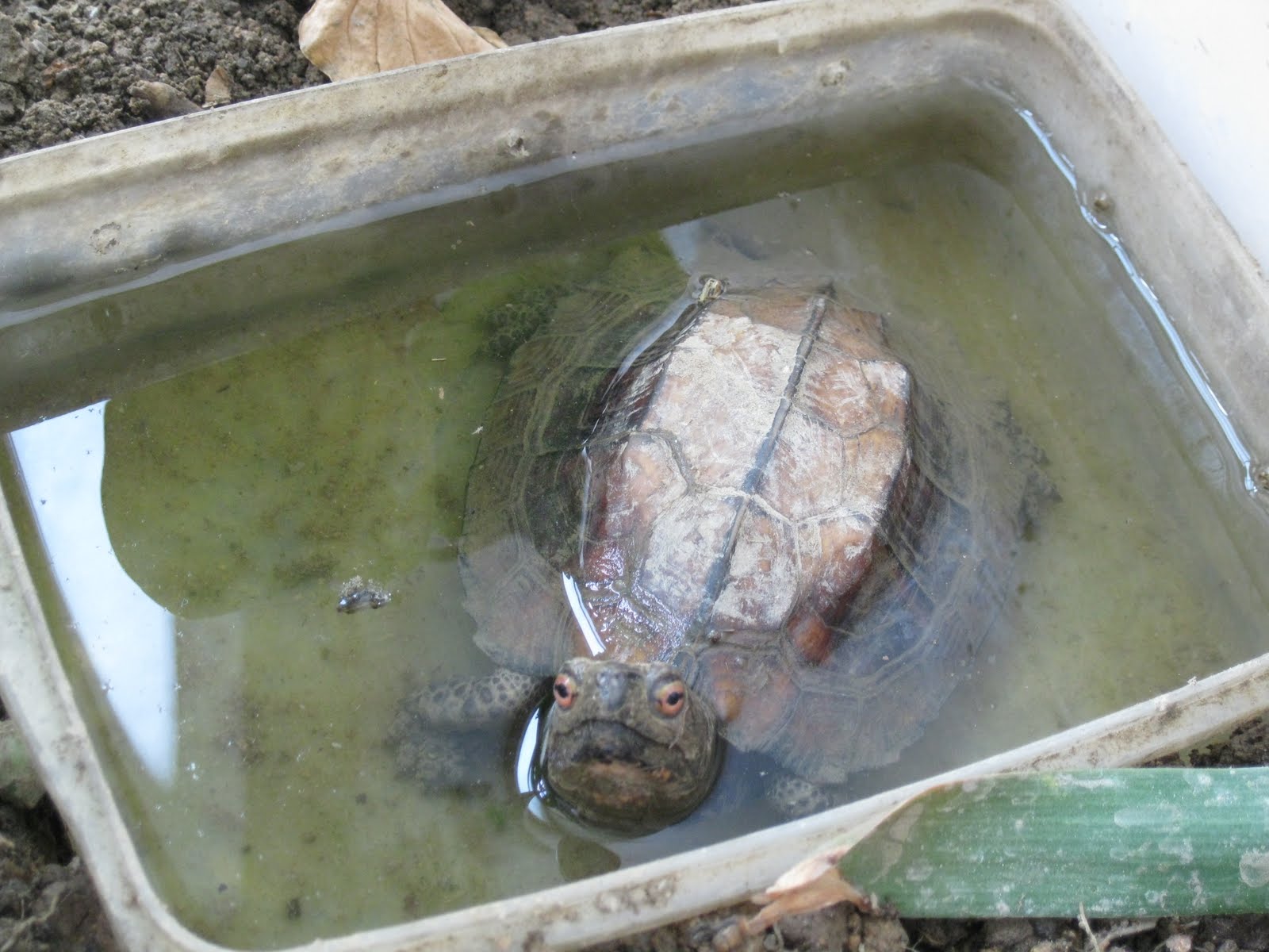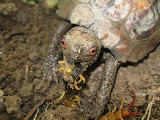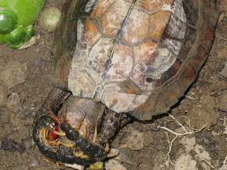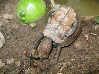 I carefully caught this dangerous creature and cut its fangs off, or it may diliver nasty bites and cause serious damage to the turtle, or me, of course.